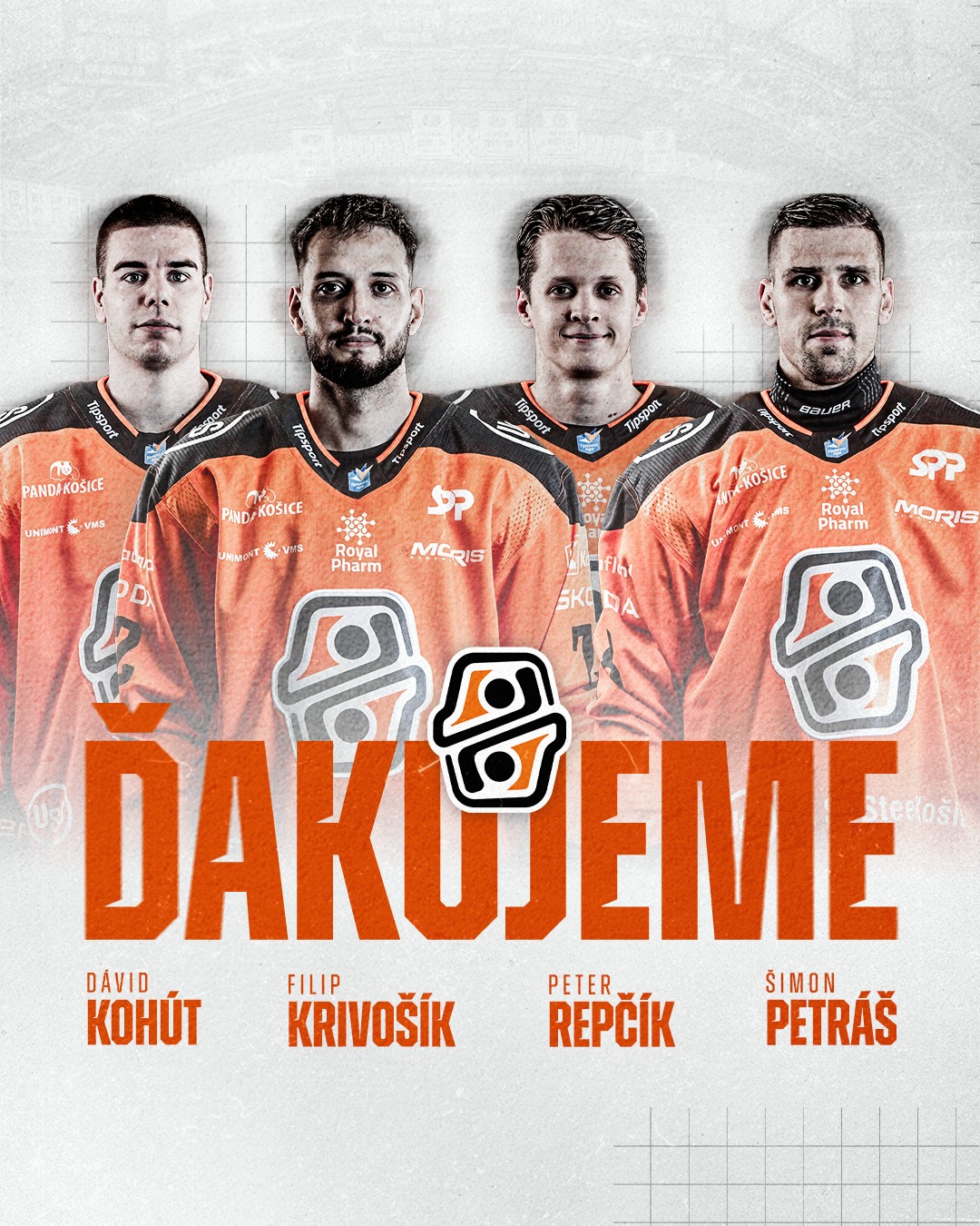 Káder vicemajstra prechádza po sezóne výraznou obmenou. Vedenie HC Košice prostredníctvom svojich komunikačných kanálov potvrdilo, že v nasledujúcom ročníku už nepočíta so štvoricou útočníkov. Z metropoly východu odchádzajú Šimon Petráš, Filip Krivošík, Peter Repčík a Dávid Kohút. Naša redakcia zisťovala, kam by mali viesť ich ďalšie kroky.