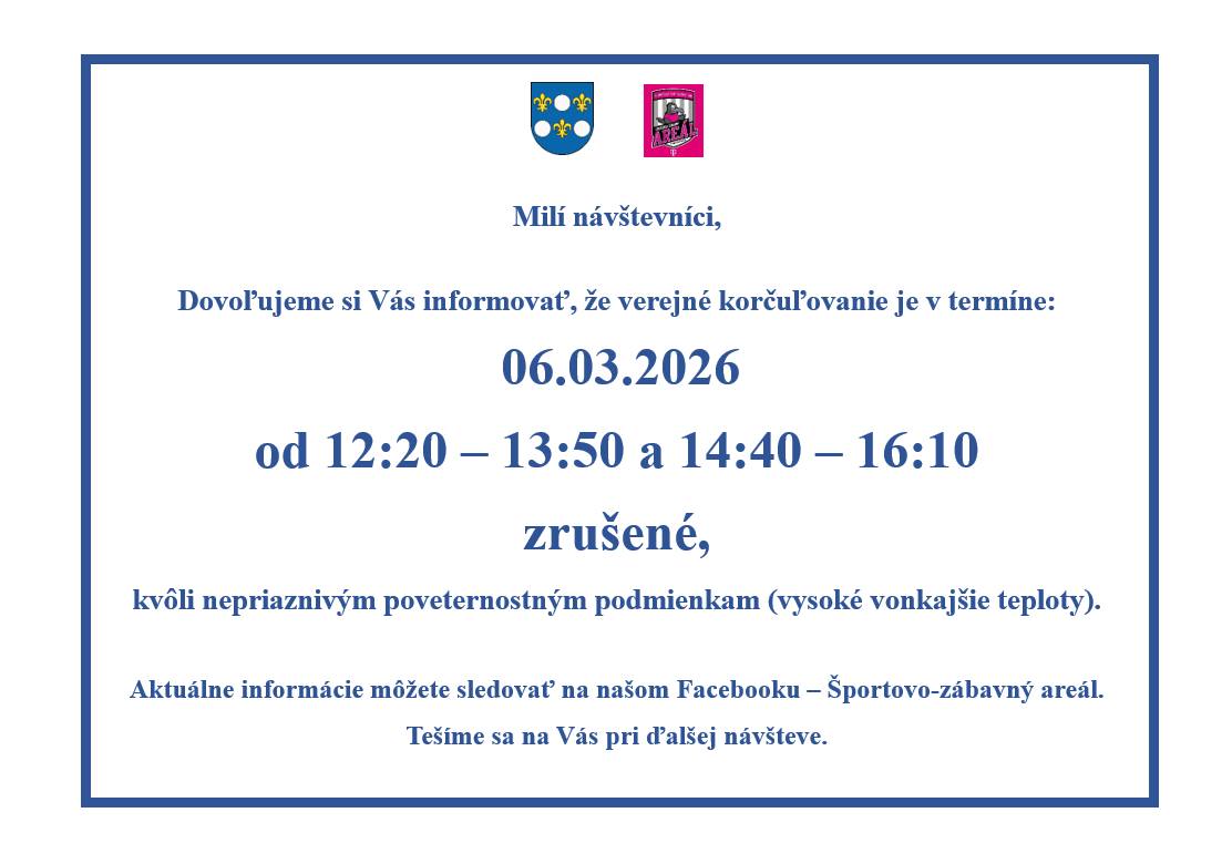,,Teplé jarné lúče nás tešia, no ľadu v Športovo-zábavnom areáli už dávajú poriadne zabrať. Pri takomto počasí je čoraz náročnejšie udržať plochu v top stave, preto sme sa rozhodli v nedeľu o 17.00 hod. ukončiť tohtoročnú zimnú sezónu korčuľovania,“ uviedla.